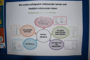 Schulregeln unterstützen das Zusammenleben in der Schule. Sie geben Transparenz und Sicherheit und helfen, Konflikte zu vermeiden. Alle Mitarbeiter*innen der Hartmannschule haben sich auf 5 Regeln festgelegt. Sie gelten im Unterricht und auch in der Betreuungszeit. Die fünf Regeln lauten: