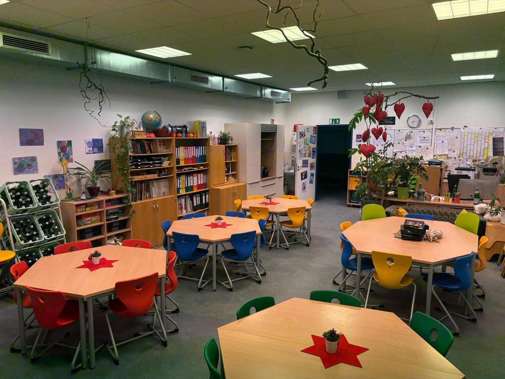 Nach dem Unterricht beginnt die Kernbetreuungszeit. Diese dauert mindestens bis 15.00 Uhr und kann bis 16.00 Uhr in Anspruch genommen werden.