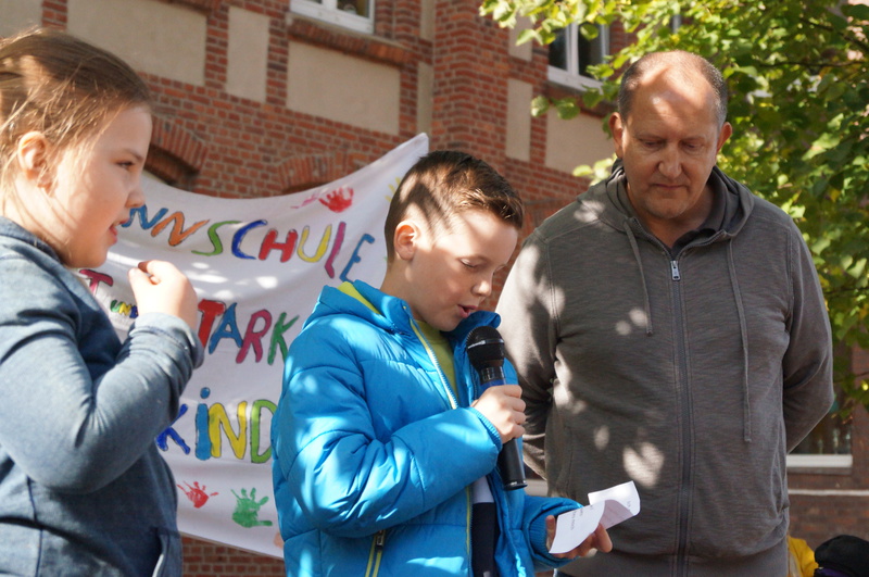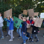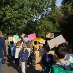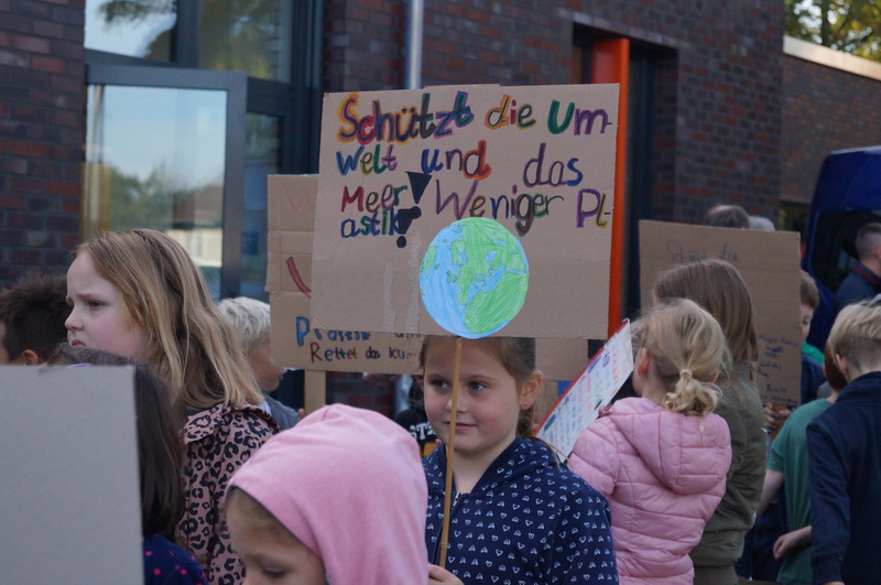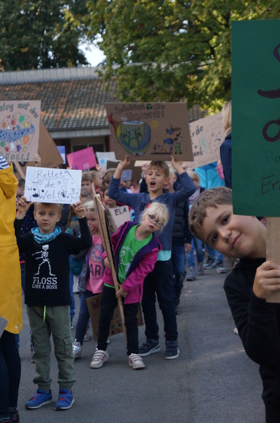 Also wurde zu Themen wie Klimawandel, Plastik in den Weltmeeren, zu Greta Thunberg und CO2-Ausstoß informiert und diskutiert. Wichtige Botschaften wurden auf Plakaten festgehalten. Mit diesen Ergebnissen wollte man aber nicht im Klassenraum bleiben, sondern sich an den Klimaprotesten auf der Straße beteiligen. „Als der Kreisverkehr extra für uns abgesperrt wurde, da hatte ich das Gefühl, etwas ganz Wichtiges zu tun“, schilderte ein Viertklässler anschließend seine Stimmung.
