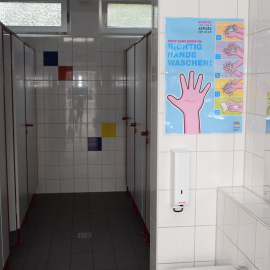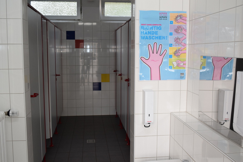 Unsere Toiletten sind wirklich kindgerecht gestaltet und noch ziemlich neu. Man kommt überall gut dran. Wenn sie jeder ordentlich benutzt, dann bleiben sie auch lange schön. Das Toilettenpapier ist meistens ausreichend da. Aber, sie bleiben nicht immer sauber. Darum hilft uns jeden Tag eine Putzfrau, die extra nur die Tioletten putzt.